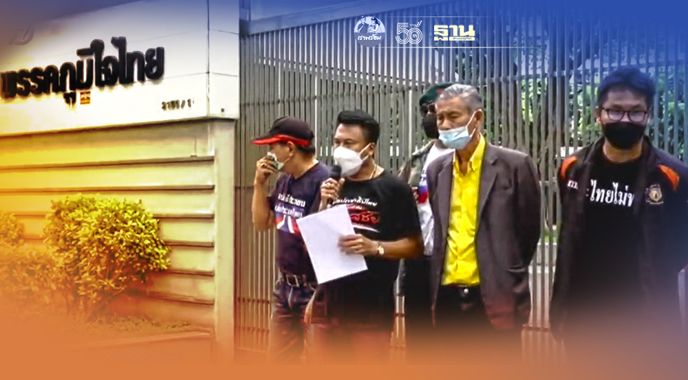 วันนี้(21 ก.ค.64) ที่หน้าพรรคภูมิใจไทย(ภท.) กลุ่มไทยไม่ทนคณะสามัคคีประชาชนเพื่อประเทศไทย และกลุ่มอาชีวะ นำโดย นายธนาวุฒิ วิชัยดิษฐ นายธนเดช ศรีสงคราม แกนนำกลุ่มอาชีวะพิทักษ์ประชาชน นายสุริยา ชินพันธุ์ นายเศวต ทินกูล นายรุ่งเรือง ชูเลิศ พร้อมคณะ ได้เข้ายื่นหนังสือถึงพรรคภูมิใจไทย เพื่อขอให้ถอนตัวจากการเป็นพรรคร่วมรัฐบาล โดยได้เสียบหนังสือไว้ที่ประตูทางเข้าพรรค เนื่องจากวันนี้ไม่มีเจ้าหน้าที่เข้ามาปฏิบัติงานในพรรค