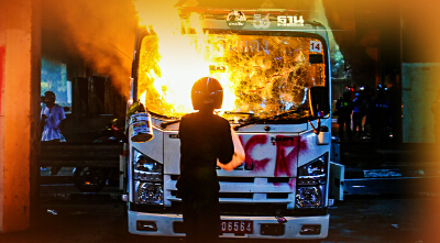 ม็อบทะลุฟ้า จุดไฟเผารถยก สน.ดินแดง ใต้สะพานทางด่วน
