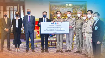 นายกรัฐมนตรี กล่าวขอบคุณรัฐบาลฝรั่งเศสสำหรับการสนับสนุนวัคซีนโควิด-19 ไฟเซอร์(Pfizer) รวมจำนวน 3,268,620 โดส ขอบคุณเอกอัครราชทูตฝรั่งเศสฯ ถือเป็นบุคคลสำคัญที่ผลักดันและสานต่อความสัมพันธ์ระหว่างไทย-ฝรั่งเศสให้มีความใกล้ชิดมาอย่างต่อเนื่อง