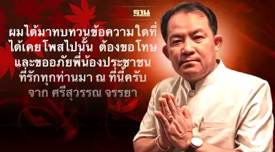 “เรียนทุกท่าน ผมได้มาทบทวนข้อความต่างๆ ที่ผมได้โพสต์ไปนั้น หากถ้อยคำใดไม่เหมาะสม ไม่สมควร ผมต้องขอโทษ และขออภัยพี่น้องประชาชนที่รักทุกท่าน มา ณ ที่นี้ด้วย ครับ