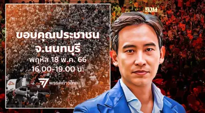 "พิธา ลิ้มเจริญรัตน์" จัดคาราวานลงพื้นที่จ.นนทบุรี ขอบคุณประชาชน 18 พฤษภาคม 2566 เวลา 16.00 - 19.00 น. เริ่มต้นที่ปากเกร็ด สิ้นสุดที่ตลาดนกฮูก