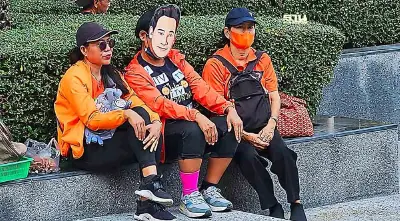 “ด้อมส้ม”สวมหน้ากาก“พิธา”ปักหลักรอฟังคำวินิจฉัยศาลรธน.บ่าย 2 โมง