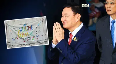 โดย นส.แพทองธารกล่าวเพียงสั้น ๆ กับผู้สื่อข่าวที่ปักหลักทำข่าวอยู่บริเวณหน้าบ้านจันทร์ส่องหล้า ว่า ป้ายผ้านี้เป็นความคิดของหลานๆ ของนายทักษิณ ซึ่งลูกคนโตของ น.ส.พิณทองทา เป็นคนคิดคำต้อนรับ และหลานๆ คนอื่นช่วยกันตกแต่ง ก่อนที่หลานทุกคนจะร่วมกันประทับรอยฝ่ามือลงไปบนป้ายผ้า พร้อมชื่อคุณพ่อ