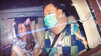 โดยช่างภาพที่ปักหลักทำข่าวสามารถบันทึกภาพนายทักษิณ นั่งสวมแมสก์สีเขียวอยู่ในรถตู้เบนซ์ทะเบียน 1414 นั่งคู่กับลูกสาว "อุ๊งอิ๊ง-แพทองธารชินวัตร" ออกจากอออกมาจากชั้นใต้ดินอาคารมหาภูมิพลราชานสรณ์ 88 พรรษา ฯ โรงพยาบาลตำรวจแล้ว