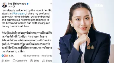 นางสาวแพทองธาร ชินวัตร นายกรัฐมนตรีโพสต์ข้อความ ว่า ดิฉันรู้สึกเสียใจอย่างสุดซึ้งต่อเหตุการณ์โจมตีอันเลวร้ายที่เกิดขึ้นในเมือง Pahalgam ในช่วงสัปดาห์ที่ผ่านมา