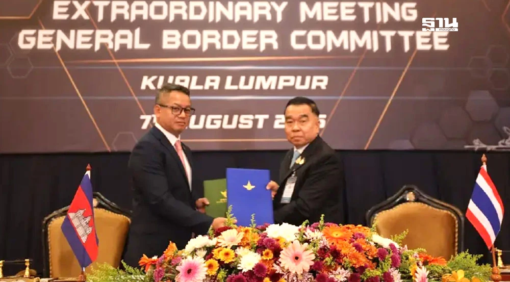 วันที่ 7 ส.ค. 35678 ที่ประเทศมาเลเซีย ภายหลัง การประชุมคณะกรรมการชายแดนทั่วไป (General Border Committee: GBC) ไทย-กัมพูชา สมัยวิสามัญ ที่ใช้เวลากว่า 1 ชั่วโมง 2 ฝ่ายเห็นพ้องแนวทางการปฏิบัติตามข้อตกลงหยุดยิง 13 ข้อระหว่างกัน ซึ่งเป็นแนวทางที่ทุกหน่วยงานที่เกี่ยวข้องของฝ่ายไทย ร่วมจัดทำกับฝ่ายเลขานุการของคณะกรรมการฯ ฝ่ายกัมพูชา