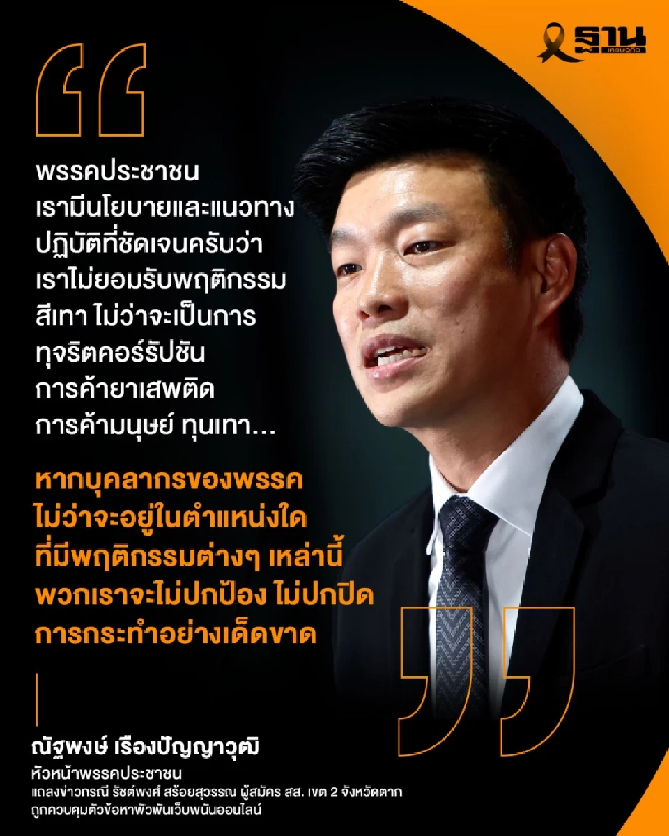 เมื่อวันที่ 14 มกราคม 2569 นายณัฐพงษ์ เรืองปัญญาวุฒิ หัวหน้าพรรคประชาชน ได้แถลงข่าวกรณี นายรัชต์พงศ์ สร้อยสุวรรณ ผู้สมัคร สส. เขต 2 จังหวัดตาก ของพรรค ถูกกองบัญชาการตำรวจสืบสวนสอบสวนอาชญากรรมทางเทคโนโลยี (บช.สอท.) ควบคุมตัวในข้อหาพัวพันเว็บไซต์การพนันออนไลน์