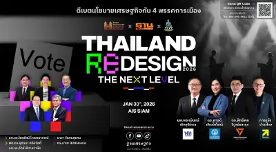 วันศุกร์ที่ 30 ม.ค. 2569 ฐานเศรษฐกิจ ร่วมกับ สถาบันสัญญาธรรมศักดิ์ จัดงาน "ดีเบตนโยบายเศรษฐกิจ Thailand Redesign 2026 The Next level " ณ AIS สยาม ตั้งแต่เวลา 12.30 – 16.00 น.ไฮไลต์ภายในงานจะได้พบกับนักวิชาการ-ผู้เชี่ยวชาญที่จะมาแลกเปลี่ยนความคิดเห็น ประกอบด้วย รศ.ดร.ไตรรัตน์ โภคพลากรณ์ อาจารย์ประจำคณะรัฐศาสตร์ มธ. และสถาบันสัญญาธรรมศักดิ์เพื่อประชาธิปไตย , ผศ.ดร.ยุทธนา ศรีสวัสดิ์ อาจารย์กฎหมายภาษีอากร และ CEO iTAX ,รศ.ดร.อัทธ์ พิศาลวานิช ผู้เชี่ยวชาญเศรษฐกิจระหว่างประเทศและอาเซียน , นายเกรียงไกร เธียรนุกุล ประธานสภาอุตสาหกรรมแห่งประเทศไทย (ส.อ.ท.) ,ดร.มานะ นิมิตรมงคล ประธานองค์กรต่อต้านคอร์รัปชัน (ประเทศไทย)