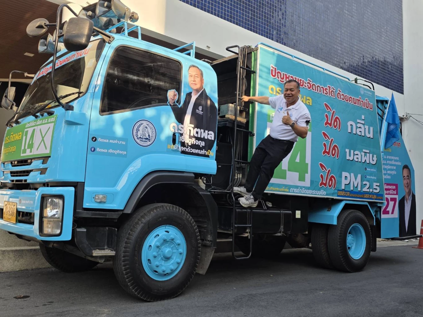 นายกิตพล เชิดชูกิจกุล ผู้สมัครสส.กทม.เขต21 ประเวศ-สะพานสูง หมายเลข14 พรรคประชาธิปัตย์ ขึ้นรถแห่โค้งสุดท้ายด้วยรถเก็บขนมูลฝอยแปลงโฉมเป็นรถหาเสียงนำเสนอนโยบายแก้ปัญหาขยะด้วยคนทำเป็น “ปิดกลิ่น ปิดมลพิษ ปิด PM2.5” พร้อมใช้ประสบการณ์ ส.ก.กว่า20ปีเร่งผลักดันทุกนโยบายสร้างคุณภาพชีวิตที่ดีเพื่อประชาชนชาวประเวศและกรุงเทพมหานคร