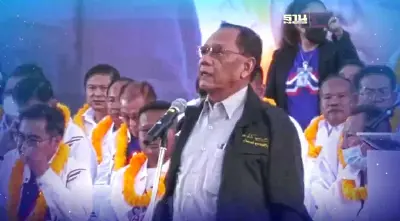 "ไตรรงค์"พูดผิดบนเวทีปราศรัยใหญ่ รทสช.ที่โคราช บอกให้คนเลือก "ไทยรักไทย" ก่อนอุทาน "ฉิบหายแล้ว" หลังรู้ตัว