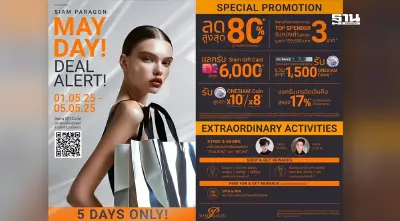 ร่วมช้อปสนั่นรับเดือนพฤษภาคม พร้อมกระตุ้นเศรษฐกิจแบบคุ้มค่ากับแคมเปญ “MAY DAY DEAL ALERT” ระหว่างวันที่ 1-5 พ.ค. 68 เท่านั้น ที่ สยามพารากอน สยามเซ็นเตอร์ และ สยามดิสคัฟเวอรี่ ติดตามรายละเอียดเพิ่มเติมได้ที่โซเชียลมีเดีย SIAMPARAGON, SIAM CENTER, SIAMDISCOVERY และ ONESIAM SuperApp