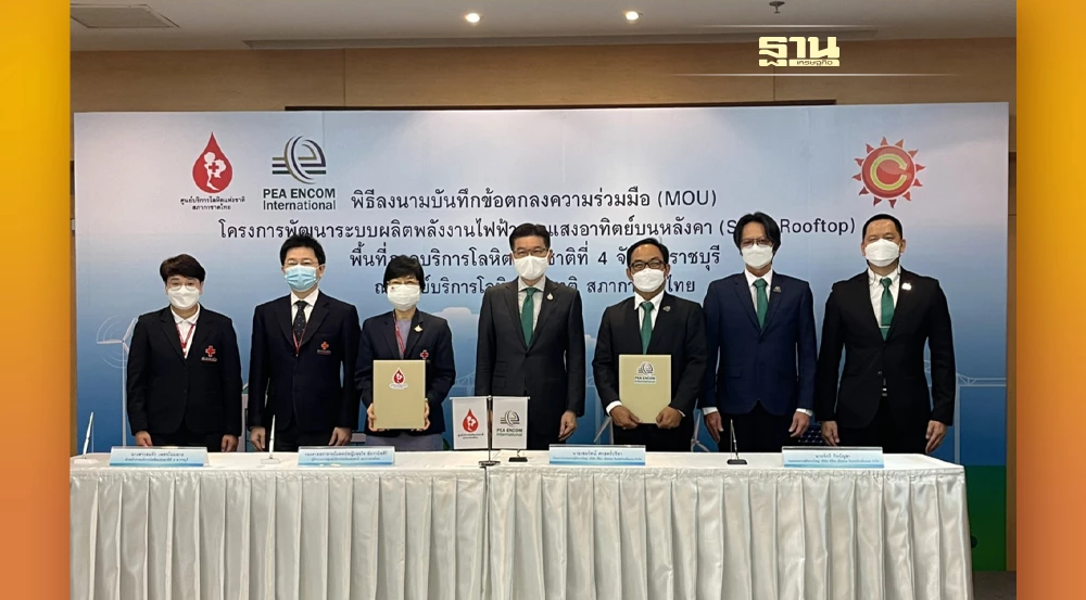 นายเขมรัตน์ ศาสตร์ปรีชา รักษาการกรรมการผู้จัดการใหญ่ บริษัท พีอีเอ เอ็นคอม อินเตอร์เนชั่นแนล จำกัด หรือ PEA ENCOM พร้อมด้วย รองศาสตราจารย์ แพทย์หญิงดุจใจ ชัยวานิชศิริ ผู้อำนวยการศูนย์บริการโลหิตแห่งชาติ สภากาชาดไทย ร่วมลงนามบันทึกข้อตกลงความร่วมมือ (MOU) โครงการพัฒนาระบบผลิตพลังงานไฟฟ้าจากแสงอาทิตย์บนหลังคา (Solar Rooftop) โดยมีนายยอดพจน์ วงศ์รักมิตร ประธานคณะกรรมการธรรมาภิบาลและการพัฒนาอย่างยั่งยืน การไฟฟ้าส่วนภูมิภาค ให้เกียรติเข้าร่วมในพิธี ณ ห้องประชุมจุมภฎ 2-3 ชั้น 9 ศูนย์บริการโลหิตแห่งชาติ สภากาชาดไทย