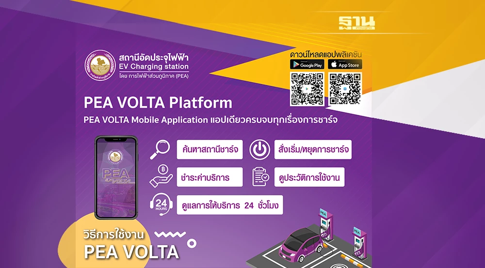 การไฟฟ้าส่วนภูมิภาค (PEA) ได้เปิดให้บริการสถานีชาร์จไฟฟ้าเพื่ออำนวยความสะดวกให้แก่ผู้ที่ใช้รถยนต์ไฟฟ้า โดยผู้ใช้งานสามารถใช้งานผ่านแอปพลิเคชัน PEA VOLTA เพื่อค้นหาสถานีชาร์จที่ใกล้ที่สุด บริหารจัดการการอัดประจุไฟฟ้า ทั้งการเติมเงิน สั่งงานเครื่องอัดประจุ ตรวจสอบประวัติการใช้งาน และการชำระค่าบริการได้อย่างรวดเร็ว