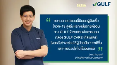นายสิตมน รัตนาวะดี ผู้ช่วยผู้จัดการฝ่ายวางแผนธุรกิจ กล่าวว่า หลังจากที่ทาง GULF ได้ทยอยมอบกล่อง “GULF CARE” (กัลฟ์แคร์) แก่หน่วยงานและกลุ่มจิตอาสาที่ช่วยเหลือผู้ป่วยโควิด-19 ไปเมื่อปลายปีที่ผ่านมา ทางทีมงานเห็นว่ายังมีผู้ป่วยจำนวนมากที่ไม่มีความพร้อมเรื่องยาและอุปกรณ์ในการตรวจเช็คอาการระหว่างรักษาตัวที่บ้าน ยิ่งช่วงนี้ยอดผู้ติดเชื้อพุ่งสูงขึ้นถึงหลักหมื่นรายต่อวัน ทาง GULF จึงสานต่อการมอบกล่องกัลฟ์แคร์แก่กลุ่มผู้ป่วยดังกล่าว โดยหวังว่าจะช่วยให้ผู้ป่วยมีอาการดีขึ้นและหายป่วยได้ในเร็ววัน