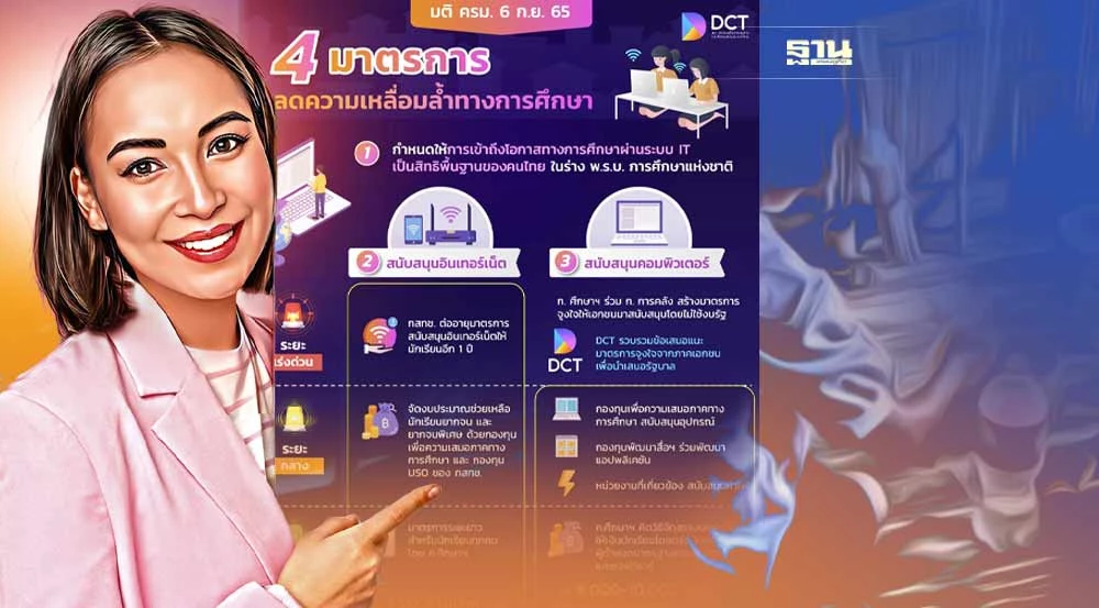 สภาดิจิทัลฯ ปลื้ม หลัง ครม. มีมติรับทราบ “มาตรการเพื่อลดความเหลื่อมล้ำด้านการศึกษา” ช่วยนักเรียนยากจนและยากจนพิเศษทั่วประเทศ 1.8 ล้านคนให้เข้าถึงอินเตอร์เน็ตและอุปกรณ์คอมพิวเตอร์ ยกระดับการศึกษาไทยเทียบเท่าสากล
