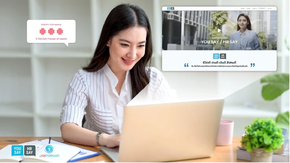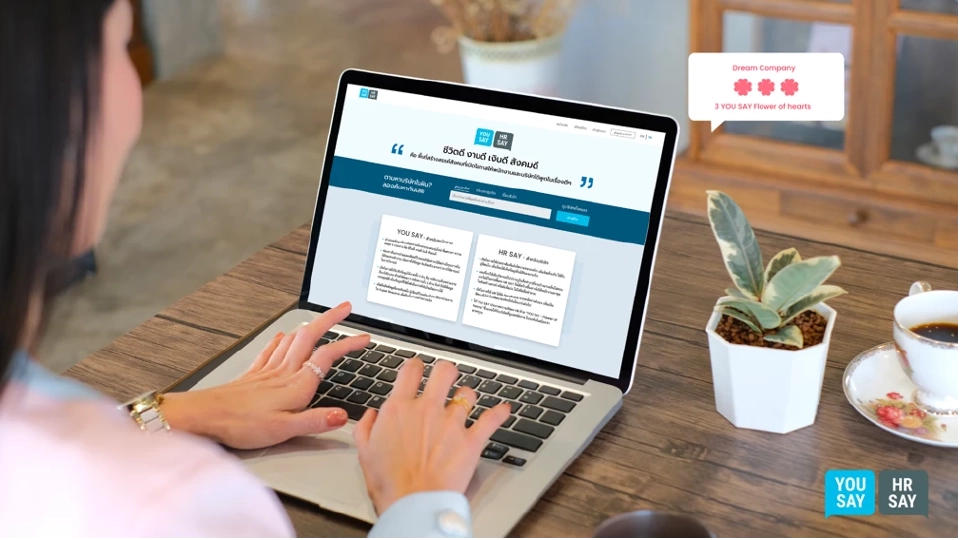 หมดปัญหาความไม่แน่ใจ หมดปัญหาความกังวลว่าตนเองจะไม่เข้ากับวัฒนธรรมองค์กร เลือกงานเลือกบริษัทได้ตรงใจตรงความต้องการมากยิ่งขึ้น ด้วยระบบ YOU SAY & HR SAY ที่ทำให้ผู้สมัครเข้าใจถึงวัฒนธรรมองค์กร และรู้จักองค์กรความยิ่งขึ้น ผ่านการรีวิวของผู้สมัครงานและทำงานจริงในองค์กร พร้อมระบบการให้คะแนนและจัดอันดับบริษัทในฝันด้วยตรา “Dream Company”