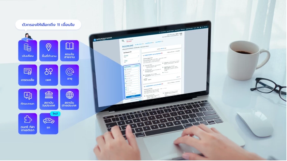 เทคโนโลยีทันสมัยที่ช่วยให้องค์กรและทีม HR สามารถเข้าถึงฐานข้อมูลผู้สมัครงานกว่า 4.4 ล้านคน สะดวกและประหยัดเวลากว่าที่เคยเป็น ด้วยระบบค้นหาผู้สมัครงานจาก Keyword ได้พร้อมกันหลายตัว พร้อมระบบ Keyword ที่แยกค้นหา ได้ระหว่าง ‘ชื่อตำแหน่ง’ และ ‘เรซูเม่ทั้งใบ’ ซึ่งระบบจะทำการค้นหาจากฐานข้อมูลผู้สมัครงาน ทั้งในเรซูเม่และข้อมูลเอกสารอื่น ๆ ที่ผู้สมัครงานได้กรอกไว้ ตรวจสอบว่ามี Keyword ตำแหน่งงานและคุณสมบัติตรงกับที่องค์กรและทีม HR ต้องการหรือไม่ พร้อมเทคโนโลยีตัวช่วย Keyword Suggestion ที่คอยแนะนำคำค้นหาใกล้เคียง ให้คุณพบผู้สมัครงานที่น่าสนใจเพิ่มกว่าเดิมหลายเท่า ทำให้องค์กรสามารถค้นหาบุคลากรได้ตรงใจตรงความต้องการมากยิ่งขึ้น