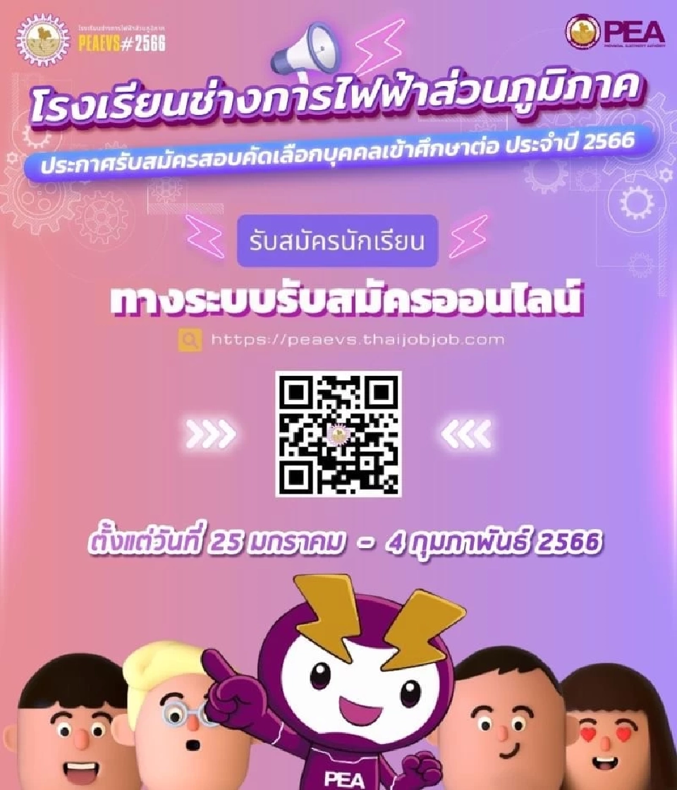การไฟฟ้าส่วนภูมิภาค ประกาศรับสมัครสอบคัดเลือกบุคคลเข้าศึกษาต่อ โรงเรียนช่าง การไฟฟ้าส่วนภูมิภาค ประจำปี 2566 ตั้งแต่วันที่ 25 มกราคม - 4 กุมภาพันธ์ 2566 จำนวน 2 หลักสูตร ดังนี้