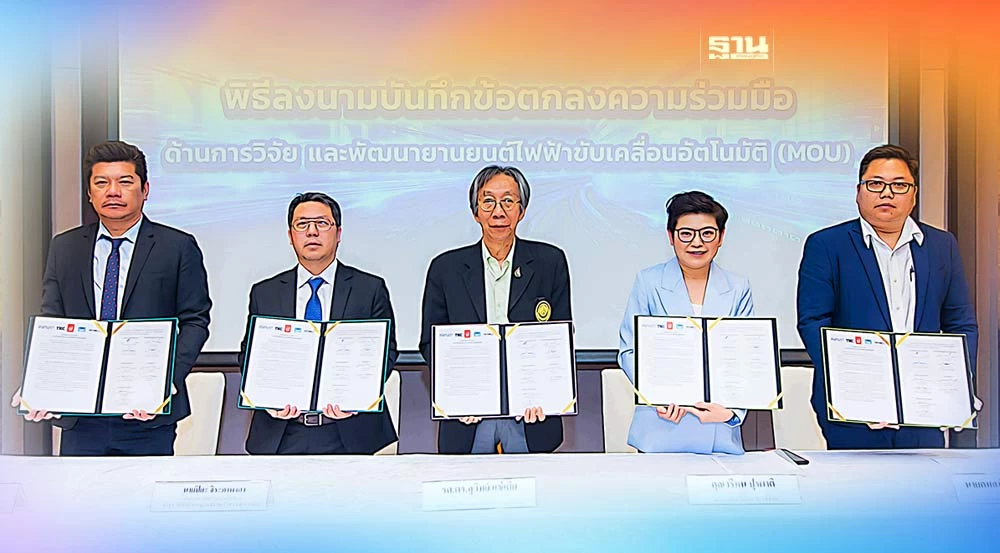 จากกรณีที่ประเทศไทย กำลังพัฒนารถไฟฟ้าขับเคลื่อนโดยไร้คนขับ ล่าสุด นายปิยะ จิราภาพงศา รองกรรมการผู้จัดการสายงานปฏิบัติการ บริษัท เทิร์นคีย์ คอมมูนิเคชั่น เซอร์วิส จำกัด (มหาชน) หรือ TKC ได้ลงนามบันทึกข้อตกลงความร่วมมือด้านการวิจัย และพัฒนายานยนต์ไฟฟ้าขับเคลื่อนอัตโนมัติ หรือ MOU กับ 4 หน่วยงาน คือ มหาวิทยาลัยเทคโนโลยีพระจอมเกล้าธนบุรี หรือ มจธ.,บริษัท พนัสแอสเซมบลีย์ จำกัด, บริษัท เจ็นเซิฟ จำกัด และบริษัท เน็กซ์ พอยท์ จำกัด (มหาชน)
