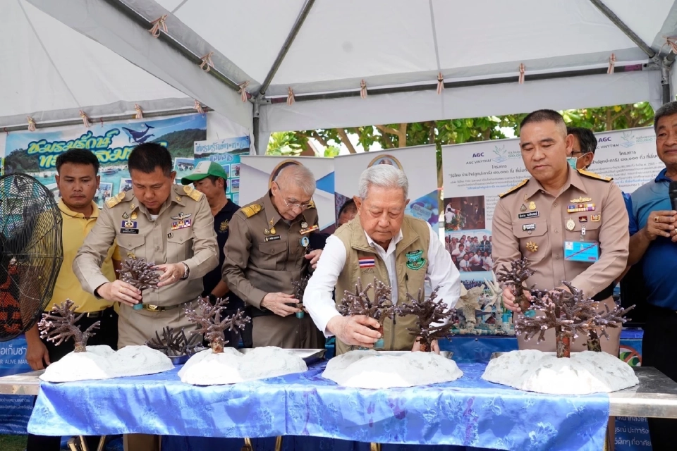 โดยได้รับเกียรติจาก พลเอก สุรยุทธ์ จุลานนท์ ประธานมูลนิธิพิทักษ์อุทยานแห่งชาติเขาใหญ่ เป็นประธานในพิธีวางปะการังเทียมเป็นปฐมฤกษ์ โดยมีพลเรือเอก เชิงชาย ชมเชิงแพทย์ ผู้บัญชาการทหารเรือ นายพรชัย จุฑามาศ กรรมการและเลขานุการ มูลนิธิอนุรักษ์พันธุกรรมพืช สมเด็จพระเทพรัตนราชสุดาฯ สยามบรมราชกุมารี (มูลนิธิ อพ.สธ.) นายสุภกิต เจียรวนนท์ ประธานกรรมการ เครือเจริญโภคภัณฑ์ นายสมพันธ์ จารุมิลินท ประธานคณะทำงานอนุรักษ์ทรัพยากรธรรมชาติและสิ่งแวดล้อมทะเลไทย มูลนิธิพิทักษ์อุทยานแห่งชาติเขาใหญ่ ร่วมพิธี ณ พิพิธภัณฑ์ธรรมชาติวิทยาเกาะและทะเลไทย และร่วมกิจกรรมวางปะการังเทียม สร้างบ้านปลา ปล่อยเต่า และปลูกต้นไม้ บริเวณหน้าหาดทิศตะวันออกของเกาะแสมสาร อำเภอสัตหีบ จังหวัดชลบุรี