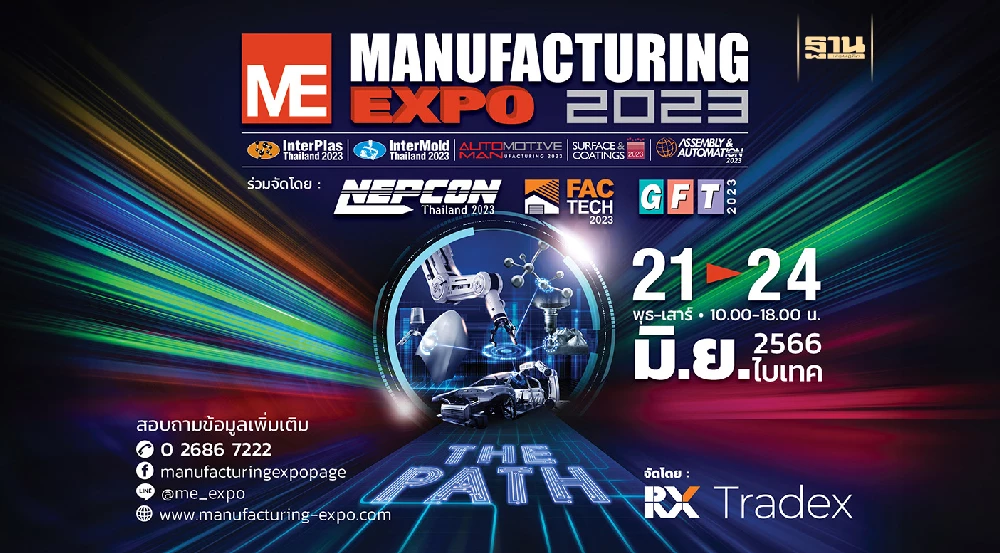 นางวราภรณ์ ธรรมจรีย์ กรรมการผู้จัดการ อาร์เอ็กซ์ เทรดเด็กซ์ (RX Tradex เดิมชื่อ รี้ด เทรดเด็กซ์) กล่าวถึงงาน Manufacturing Expo 2023 มหกรรมเพื่ออุตสาหกรรมการผลิตและอุตสาหกรรมสนับสนุนที่ครบครันที่สุดในอาเซียน ซึ่งในปีนี้กำหนดจัดให้มีขึ้นระหว่างวันที่ 21-24 มิถุนายน 2566 ณ ศูนย์นิทรรศการและการประชุมไบเทค บางนา โดยงานในปีนี้จัดขึ้นภายใต้แนวคิดหลักคือ ‘The Path’ ที่หมายถึง ‘เส้นทาง’ เพื่อจะสื่อว่า นักอุตสาหการที่มาเยี่ยมชมงานนี้ จะได้พบกับ ‘เส้นทาง’ สู่ความสำเร็จ เพราะจะได้เห็นเทคโนโลยีใหม่ๆ ที่น่าตื่นเต้นจากหลายประเทศ รวมทั้งในพาวิลเลี่ยนนานาชาติจาก 6 ประเทศและเขตปกครองพิเศษ ได้แก่ เกาหลีใต้ จีน ญี่ปุ่น สิงคโปร์ ไต้หวัน และฮ่องกง
