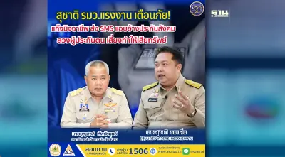 สุชาติ รมว.แรงงาน เตือนภัย แก๊งมิจฉาชีพ ส่ง SMS แอบอ้างประกันสังคม ลวงผู้ประกันตนกดลิงก์ปลอม จนมีความเสี่ยงทำให้เสียทรัพย์
