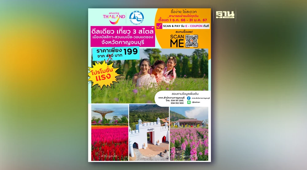 ททท. สำนักงานกาญจนบุรี และผู้ประกอบการท่องเที่ยวเชิงสร้างสรรค์ที่มีใจรักษ์สิ่งแวดล้อม ชวนเดินทางมาสร้างประสบการณ์การท่องเที่ยวแบบความสุขทันใจไม่ต้องรอ @ กาญจนบุรี พร้อมมาร่วมกันเป็นส่วนหนึ่งของธรรมชาติ กับดีลท่องเที่ยวสุดคุ้มข้ามปี