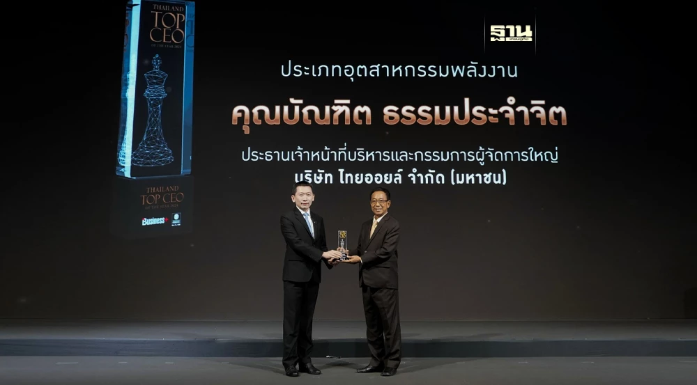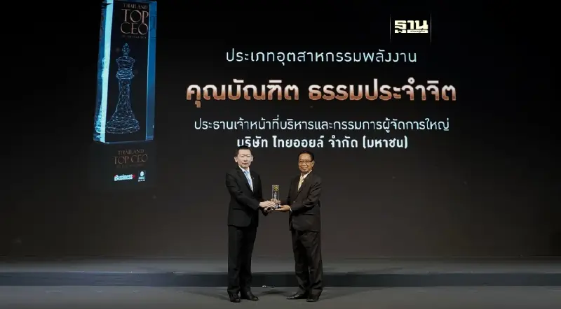 คุณบัณฑิต ธรรมประจำจิต ประธานเจ้าหน้าที่บริหารและกรรมการผู้จัดการใหญ่ บริษัท ไทยออยล์ จำกัด (มหาชน) ได้รับรางวัล สุดยอดผู้นำองค์กรแห่งปี โดยเข้ารับรางวัลเกียรติยศ “THAILAND TOP CEO OF THE YEAR 2024” ประเภทอุตสาหกรรมพลังงาน จาก ฯพณฯ นุรักษ์ มาประณีต องคมนตรี สะท้อนถึงการเป็นผู้นำองค์กรที่มีผลงานที่โดดเด่น สามารถนำพาองค์กรไปสู่ความเป็นเลิศ พร้อมให้ความสำคัญกับผู้มีส่วนได้เสียทุกภาคส่วน ภายใต้ความท้าทายของโลกในยุคปัจจุบัน