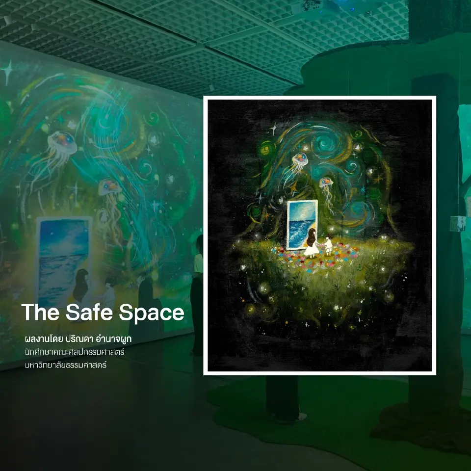 3) “The Safe Space” ผลงาน “ปริณดา อำนาจผูก” นักศึกษาชั้นปีที่ 4 คณะศิลปกรรมศาสตร์ มหาวิทยาลัยธรรมศาสตร์ ที่เล่าเรื่องราวความรัก ความผูกพันระหว่าง “น้องปูนปั้น - ด.ช.ธีรโชติ แก้วเผือก” และคุณแม่ ก่อให้เกิดเป็นพลังพาลูกก้าวผ่านการเยียวยา จนนำไปสู่อนาคตที่งดงาม