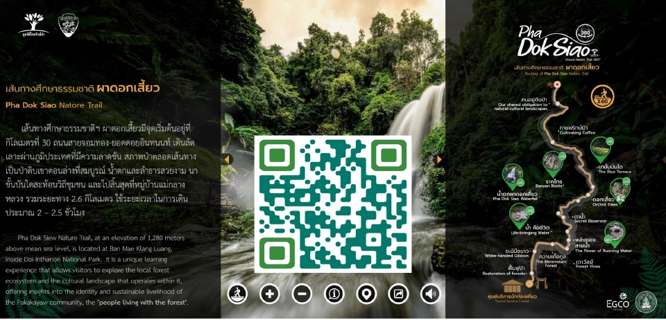 สแกน QR Code ด้านล่าง เพื่อเข้าชมระบบสื่อความหมายออนไลน์ และวีดิโอเยี่ยมชมเสมือนจริง 360 องศา “เส้นทางศึกษาธรรมชาติผาดอกเสี้ยว”