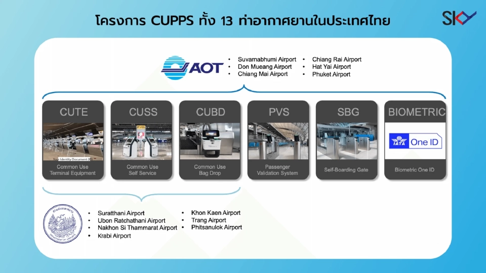 ระบบ CUPPS ที่ SKY นำเสนอในสนามบินเหล่านี้ ครอบคลุมโซลูชันหลัก อาทิ
