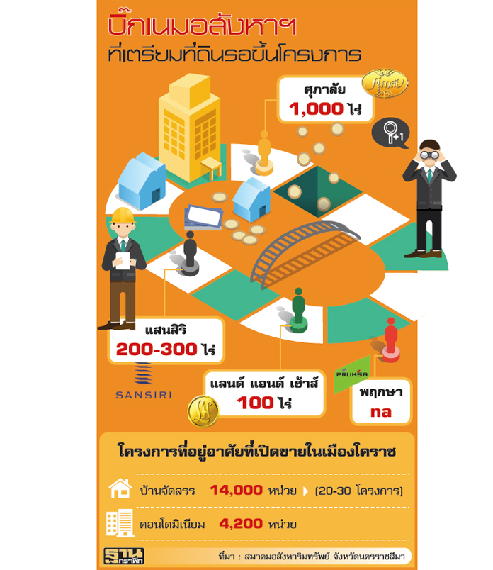 ไม่เพียงแต่ราคาบ้านจะขยับขึ้น ผู้ประกอบการท้องถิ่นก็หาซื้อที่ดินเพื่อพัฒนาโครงการยากเช่นกัน เนื่องจาก กระแสรถไฟไทย-จีน ที่จะก่อสร้าง ยิ่งทำให้ชาวบ้านโก่งราคาขาย ประกอบกับที่ดินทำเลดีอยู่ในมือนักลงทุนรายใหญ่จากส่วนกลางหมด อาทิ แสนสิริ ศุภาลัย รวมทั้งผู้ประกอบการรายใหญ่ในท้องถิ่น เช่น กลุ่มสราญรมย์ ปฐมทอง คลังคาซ่า ซึ่งได้เปรียบที่ซื้อที่ดินช่วงราคาถูก