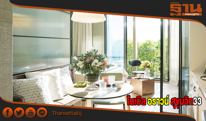 โครงการโนเบิลอราวน์ สุขุมวิท33 เป็นอาคารที่พักอาศัยสูง 25 ชั้น 1 อาคาร จำนวน 274 หน่วย ขนาดพื้นที่โครงการ 1-2-95.8 ไร่ โดดเด่นในความแตกต่างของการดีไซน์ที่ตอบสนอง ทุกความต้องการในการอยู่อาศัยภายใต้แนวคิด Material Collaboration Design ความลงตัวที่ไม่คุ้นตา แต่ปฏิเสธไม่ได้ ผสมผสานวัสดุและเฉดสีขับความโดดเด่นให้กันและกันอย่างลงตัวในทุกองค์ประกอบ เพื่องานดีไซน์มีจังหวะและมีมิติอันเป็นเอกลักษณ์ โดยประกอบด้วยห้องพักขนาดประมาณ 27-51 ตารางเมตร สำหรับประเภท 1 ห้องนอน ห้องพักขนาดประมาณ 54-65 ตารางเมตร สำหรับประเภท 2 ห้องนอน