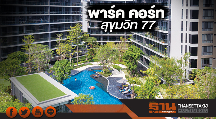 โครงการคอนโดมิเนียมและอพาร์ตเมนต์ระดับลักชัวรีไฮเอนด์ พาร์ค คอร์ท (Park Court) สุขุมวิท 77 ที่ตกแต่งเสร็จพร้อมเข้าอยู่ (Fully Furnished) พัฒนาบนเนื้อที่กว่า 7.8 ไร่ รวม 5 อาคาร สูง 7 ชั้น โดย 3 อาคารพัฒนาเป็นอพาร์ตเมนต์รวม 42 ยูนิต และอีก 2 อาคาร พัฒนาเป็นคอนโดมิเนียมรวม 28 ยูนิต ขนาดพื้นที่ใช้สอยแบ่งออกได้ 3 แบบ โดยแบบแรก พื้นที่ใช้สอย 287 ตารางเมตร แบบที่ 2 พื้นที่ใช้สอย 282 ตารางเมตร และแบบที่ 3 พื้นที่ใช้สอย 285 ตาราง เมตร กับฟังก์ชัน 3 ห้องนอน และ 1 ห้องอเนกประสงค์ ทั้งนี้ ออกแบบมาให้สามารถปรับเปลี่ยนได้ตามต้องการของผู้อยู่อาศัย