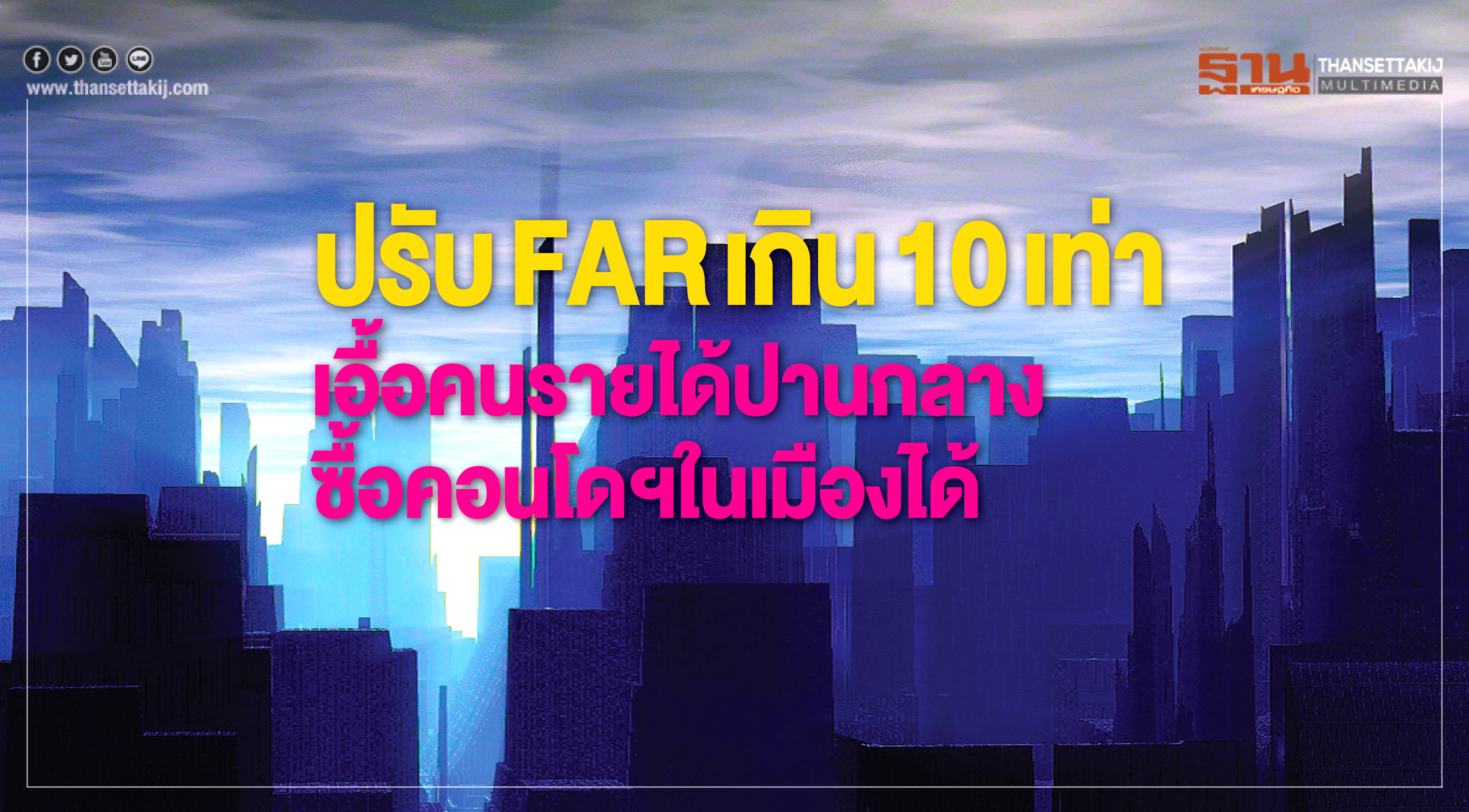 กูรูอสังหาฯ เห็นพ้องปรับ FAR สูงสอดคล้องราคาที่ดิน ปัจจัยสำคัญหนุนให้คนรายได้ปานกลางและรายได้น้อย สามารถเป็นเจ้าของที่อยู่อาศัยในเมืองได้ พร้อมพัฒนาศูนย์ชุมชนกระจายหลายพื้นที่