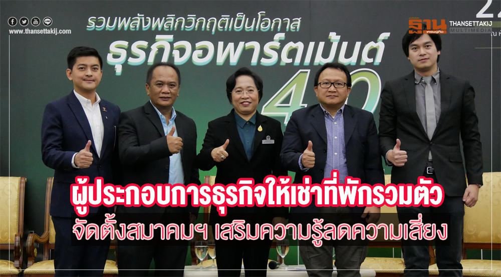 ผู้ประกอบการธุรกิจให้เช่าที่พักอาศัยทั่วประเทศ กว่า 300 ราย ร่วมก่อตั้ง “สมาคมการค้าผู้ประกอบการธุรกิจห้องเช่า” หลังธุรกิจให้เช่าที่พักอาศัย ทั้งในรูปแบบ ห้องเช่า อพาร์ตเม้นต์ และคอนโดให้เช่า เติบโตก้าวกระโดด ระบุเร่งให้ความรู้ผู้ประกอบการ ลดความเสี่ยงธุรกิจ เร่งเสริมความรู้สมาชิก รับมือ"ภาษีนาทีทอง" ทั้งการเปลี่ยนแปลงของภาษีที่ดินและสิ่งปลูกสร้าง รวมถึงด้านการจัดการภาษีมรดกที่จะมอบให้กับทายาท