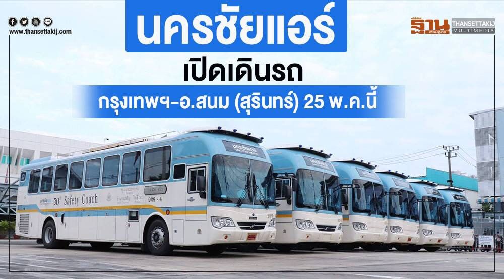 นครชัยแอร์ ตั้งเป้าเติบโตของรายได้รวมปี 62 เติบโต 5 % จากการปรับขึ้นอัตราค่าโดยสารที่มีผลตั้งแต่ 22 เม.ย. และจำนวนผู้โดยสารเพิ่ม 1.5% ดีเดย์เปิดเดินรถเส้นทางใหม่ กรุงเทพฯ – อ.สนม (จ.สุรินทร์) 25 พค.นี้