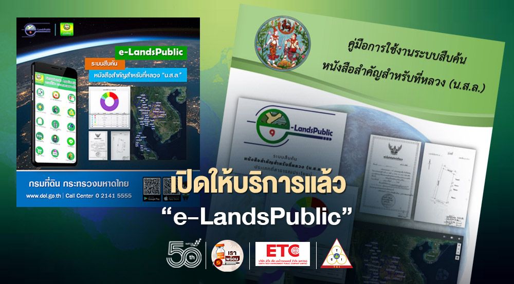 จึงได้พัฒนาระบบ “e-LandsPublic” ขึ้น จากการประยุกต์ใช้เทคโนโลยี Cloud Server ร่วมกับเทคโนโลยีภูมิสารสนเทศบนเครือข่ายอินเทอร์เน็ต โดยปัจจุบันกรมที่ดินได้เชื่อมโยงระบบ “e-LandsPublic” เข้ากับโมบายแอปพลิเคชัน “SMARTLANDS” ของกรมที่ดิน ยิ่งช่วยให้การสืบค้นหนังสือสำคัญสำหรับที่หลวง (น.ส.ล.) ประเภทที่สาธารณประโยชน์ ทำได้อย่างสะดวกง่ายดาย จากโทรศัพท์มือถือหรือคอมพิวเตอร์ ได้ทุกที่ทุกเวลา หน่วยงานของรัฐและประชาชนสามารถเข้าไปใช้งานระบบ “e-LandsPublic” ได้ฟรี