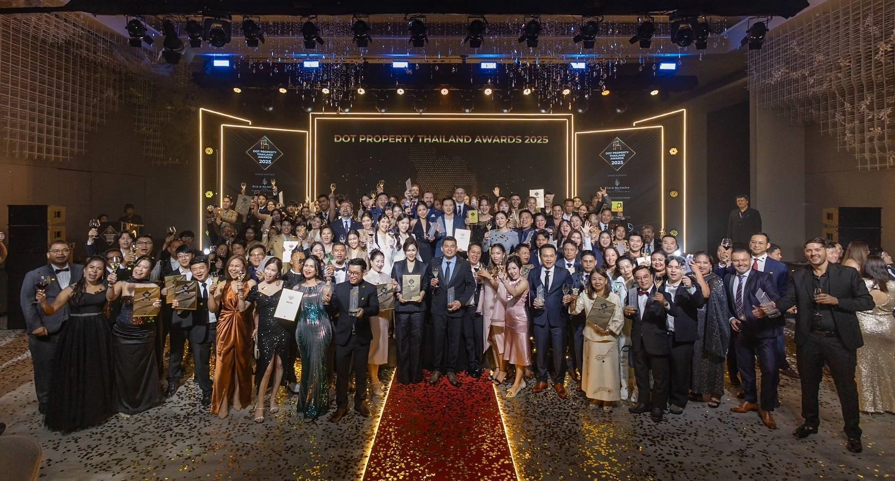 ผู้สื่อข่าวรายงานว่า เมื่อเร็วๆนี้ มีการจัดงาน รางวัล Dot Property Thailand Awards 2025 ซึ่งจัดขึ้น ณ โรงแรมโฟร์ซีซั่นส์ มีการมอบรางวัลมากกว่า 40 รางวัลให้แก่ผู้พัฒนาอสังหาริมทรัพย์ที่มีผลงานโดดเด่นเป็นงานประจำปี ซึ่งได้รับการยอมรับว่าเป็นเวทีระดับสูงสุดของความเป็นเลิศในแวดวงอสังหาริมทรัพย์ จัดขึ้นเพื่อเฉลิมฉลองความสำเร็จอันโดดเด่นของผู้พัฒนาและโครงการที่มีบทบาทสำคัญในการกำหนดทิศทางตลาดอสังหาริมทรัพย์ของประเทศไทย ปีนี้มีแขกผู้ทรงเกียรติมากกว่า 400 คนจากทั่วประเทศเข้าร่วมงาน