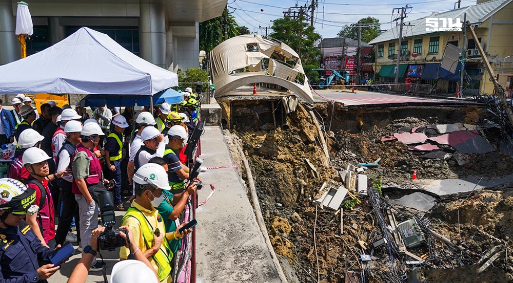 โดยกรอบเวลาการทำงานเพื่อเทคอนกรีตปิด ซึ่งขณะนี้ปิดได้แล้ว จะอยู่ในช่วงเวลาถึงวันอาทิตย์นี้ และจะเผื่อเวลาซัก 1 วัน เพื่อให้คอนกรีตเช็ตตัว และจับตัวก่อน ส่วนในสัปดาห์หน้าตั้งแต่วันที่ 29 ก.ย. เป็นต้นไป ในเวลา 5 - 7 วัน จะเป็นวันที่ รฟม. และผู้รับจ้างจะถมทราย ก็จะมีรถวิ่งเข้ามาค่อนข้างเยอะ อีกประมาณ 5,000 - 6,000 คิว ซึ่งจะใช้เวลา 5 - 7 วัน จนถึงวันที่ 3 ตุลาคม เมื่อทรายมาถึงระดับผิวถนนแล้ว ก็จะเป็นเรื่องของการทำพื้นผิวถนน โดยช่วงเวลา 2 - 4 วันที่เหลือ จะเสร็จตามกรอบเวลาภายในวันที่ 8 ตุลาคม ก่อนที่จะมีการเปิดให้สัญจรตามปกติ อย่างไรก็ตาม สถานการณ์ยังมีปัจจัยเสี่ยงอยู่บ้าง เช่น ฝนที่อานจตกลงมาหนักอย่างต่อเนื่อง และได้มีการหารือกับทีมเทคนิคทั้งหมดเรื่องการระบายน้ำออกในพื้นที่