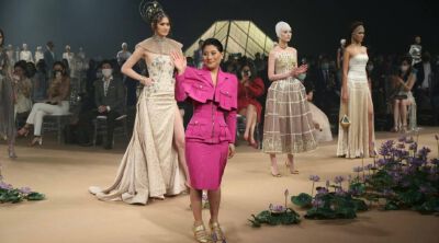 อาทิ ชุดเชิ้ตเดรสแบบซาฟารีสีคาเมลประดับแขนเสื้อโอเวอร์ไซส์ ชุดเดรสผ้าบุหงาที่อัดพลีตแบบ Asymmetrical เสื้อผ้าบุหงาที่ปักลาย