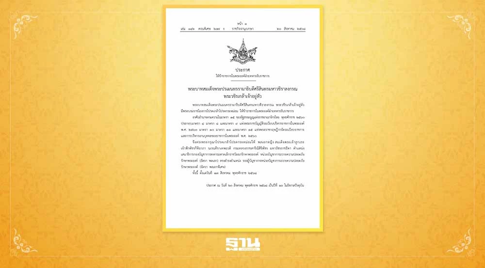 ประกาศ ณ วันที่ 20 สิงหาคม พุทธศักราช 2568 เป็นปีที่ 10 ในรัชกาลปัจจุบัน