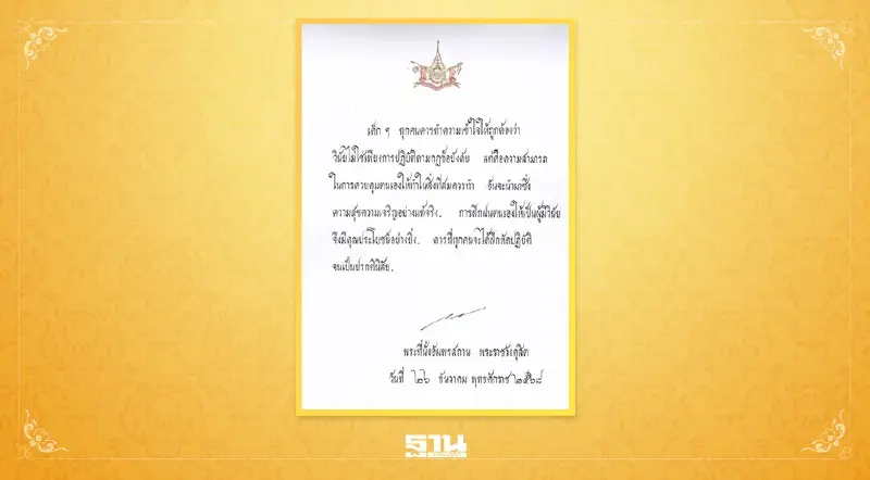 พระบาทสมเด็จพระเจ้าอยู่หัว พระราชทานพระบรมราโชวาท เนื่องในวันเด็กแห่งชาติ ประจำปี2569 เพื่อเชิญลงพิมพ์ในหนังสือวันเด็กแห่งชาติ พุทธศักราช 2569