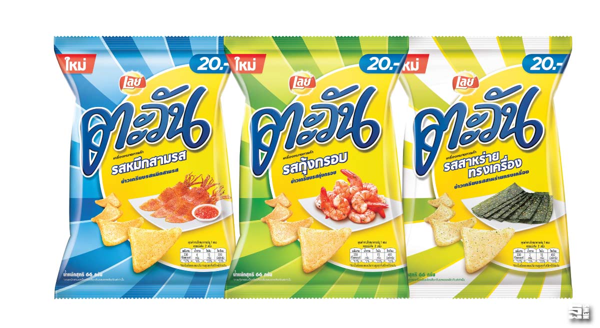 ข้าวเกรียบ “ตะวัน” อร่อยใช่ ถูกปากคนไทย โดย บริษัท เป๊ปซี่-โคล่า (ไทย) เทรดดิ้ง จำกัด ยกขบวนแก๊งสามช่า เรียกเสียงฮานำเสนอความอร่อยที่ถูกปากคนไทยมาพร้อมกับ 3 รสชาติยอดนิยมอย่าง “ตะวันรสกุ้งกรอบ” ความอร่อยของกุ้งทะเลที่นำมาคลุกเคล้ากับเครื่องปรุงสูตรเฉพาะ โรยบนข้าวเกรียบทอดร้อนๆ ให้ทุกคำอร่อยกรุบกรอบกลมกล่อมเข้าถึงเนื้อ “ตะวันรสหมึกสามรส” การผสมผสานระหว่างรสชาติของปลาหมึกแท้ๆ ที่ปิ้งจนสุกหอม ราดด้วยน้ำจิ้มสามรสสูตรเด็ด นำมาโรยบนข้าวเกรียบทอดกรอบ อร่อยเข้มเต็มคำ และ “ตะวันรสสาหร่ายทรงเครื่อง” ความอร่อยของสาหร่ายทะเลที่ถูกปรุงรสด้วยซอสสูตรพิเศษก่อนนำไปอบจนหอมกรอบทั่วทั้งแผ่นนำมาบดแล้วโรยบนข้าวเกรียบทอดให้คุณอร่อยได้เต็มๆแบบไม่ต้องยั้ง