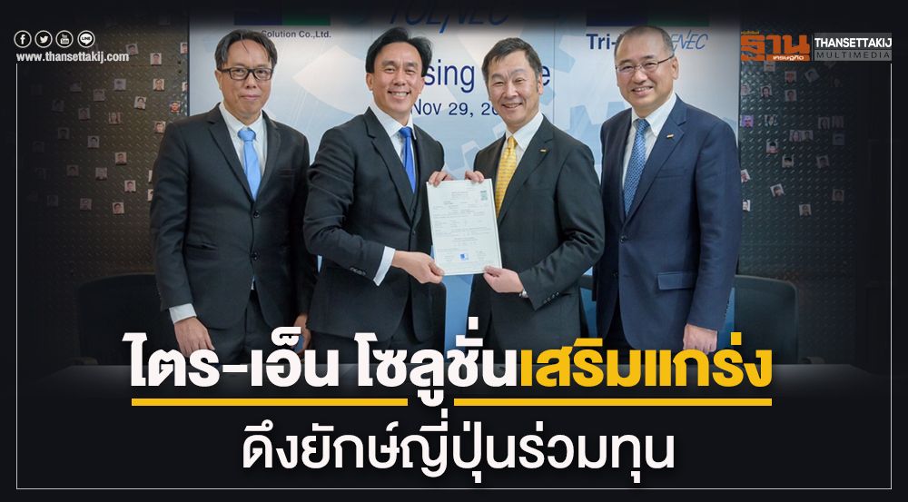 บริษัท ไตร-เอ็น โซลูชั่น จำกัด ผู้ให้บริการติดตั้งงานวิศกรรมระบบประกอบอาคารชั้นนำที่ดำเนินธุรกิจมายาวนานกว่า 16 ปี และเป็นที่ยอมรับในธุรกิจอสังหาริมทรัพย์ ตอบสนองทุกงานวิศวกรรมระบบ อาทิ งานระบบไฟฟ้า งานระบบสุขาภิบาล งานระบบดับเพลิง งานระบบปรับอากาศและระบายอากาศ ร่วมทุนกับบริษัทยักษ์ใหญ่ชั้นนำข้ามชาติ โทเอเน็ค คอร์ปปอเรชั่น (TOENEC Corporation) จากประเทศญี่ปุ่น พร้อมเปลี่ยนชื่อบริษัทเป็น บริษัท ไตร-เอ็น โทเอเน็ค จำกัด (Tri-En TOENEC Co., Ltd.) เพื่อหนุนศักยภาพการทำงาน และปรับกลยุทธ์การทำงานให้ประสิทธิภาพสูงขึ้น