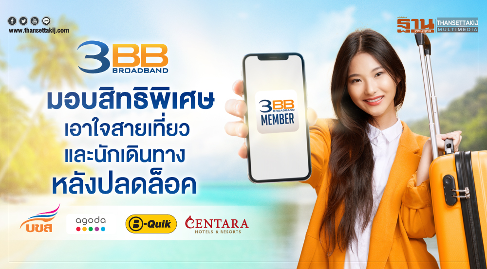 ในช่วงเวลาปลดล็อคแบบนี้ เชื่อว่าหลายๆคนกำลังวางแผนออกเดินทางท่องเที่ยวเพื่อพักผ่อนตามสถานที่ต่างๆ หรือจะเป็นการเดินทางกลับภูมิลำเนา พบปะญาติพี่น้อง เพื่อนสนิทให้หายคิดถึงหลังจากต้องกักตัวอยู่บ้านจากสถานการณ์ป้องกันการระบาดของโควิด-19 เป็นเวลาหลายเดือน 3BB จึงขอมอบความสุขและตอบแทนลูกค้าด้วยสิทธิพิเศษเพื่อเป็นส่วนลดค่าเดินทางและที่พักให้ลูกค้าได้ท่องเที่ยวแบบอุ่นใจ สบายกระเป๋า และถึงที่หมายแบบปลอดภัย