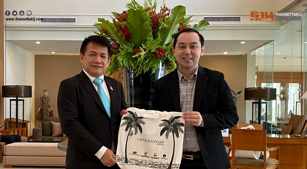 กิตติเดช คุ้มม่วง (ขวา) ผู้จัดการ โรงแรมแคนทารี เบย์ ระยอง ให้การต้อนรับนายแพทย์ปรีชา เปรมปรี (ซ้าย) รองอธิบดีกรมควบคุมโรค ในโอกาสให้เกียรติร่วมเข้าประชุมสัมมนา ณ ห้องประชุมซีฮอส โรงแรมแคนทารี เบย์ ระยอง