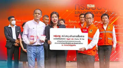 เมื่อเร็ว ๆ นี้ กลุ่มทรู พร้อมอำนวยความสะดวกด้านการสื่อสาร หนุนภารกิจกู้ภัยเหตุการณ์แผ่นดินไหว ณ สาธารณรัฐทูร์เคีย (ตุรกี) กรมป้องกันและบรรเทาสาธารณภัย โดย นายบุญธรรม เลิศสุขีเกษม (ขวา) อธิบดีกรมฯ รับมอบซิมโรมมิ่งจาก ทรูมูฟ เอช จำนวน 50 ซิม จาก กลุ่มทรู โดย นางพิมลพรรณ ศิริวงศ์วานงาม (กลาง) ผู้อำนวยการ สายงานสื่อสารองค์กรและประชาสัมพันธ์การตลาด บมจ. ทรู คอร์ปอเรชั่น เพื่อนำไปใช้สนับสนุนการทำงานของทีมค้นหาและกู้ภัยในเขตเมือง (Urban Search and Rescue) หรือ USAR Thailand ของกรมป้องกันและบรรเทาสาธารณภัย ได้ใช้โทรออก รับสาย ส่งข้อความ และใช้ดาต้าโรมมิ่ง 5G ตลอด 24 ชั่วโมง นาน 30 วัน