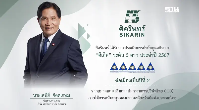 นายเสนีย์ จิตตเกษม ประธานกรรมการ บริษัท ศิครินทร์ จำกัด (มหาชน) หรือ SKR ผู้ดำเนินงานธุรกิจโรงพยาบาลเอกชนขนาดใหญ่ เปิดเผยว่า รางวัล CGR นับเป็นมาตรฐานที่สำคัญในการประเมินคุณภาพการกำกับดูแลกิจการของบริษัทจดทะเบียนไทย ที่สะท้อนให้เห็นถึงความมุ่งมั่นของบริษัทในการบริหารจัดการที่ดี มีความโปร่งใส และมีความรับผิดชอบต่อสังคม ซึ่งนับเป็นอีกความภาคภูมิใจในความสำเร็จที่สำคัญของบริษัท อันจะนำไปสู่การสร้างความไว้วางใจให้กับผู้ถือหุ้น นักลงทุน และผู้มีส่วนได้ส่วนเสียทุกภาคส่วน โดยบริษัทจะยังคงขับเคลื่อนพัฒนาธุรกิจตามมาตรฐานนี้ต่อไป เพื่อสร้างความเชื่อมั่น และนำไปสู่การขยายฐานธุรกิจให้เติบโตขึ้นอย่างต่อเนื่องและยั่งยืนในระยะยาวต่อไป