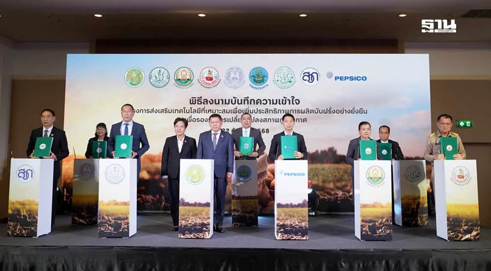 วันที่ 22 กันยายน 2568 หน่วยงานในสังกัดกระทรวงเกษตรและสหกรณ์ 8 หน่วยงาน ได้ลงนามบันทึกความเข้าใจ กับบริษัทเป๊ปซี่-โคล่า (ไทย) เทรดดิ้ง จำกัด ขับเคลื่อนโครงการส่งเสริมเทคโนโลยีที่เหมาะสมเพื่อเพิ่มประสิทธิภาพการผลิตมันฝรั่งอย่างยั่งยืน รองรับการเปลี่ยนแปลงสภาพภูมิอากาศ ร่วมกับ โดยพร้อมเป็นเครือข่ายการส่งเสริมการผลิตมันฝรั่งให้มีประสิทธิภาพและเกิดประโยชน์แก่เกษตรกร ผู้บริโภค และภาคการเกษตรไทย ณ โรงแรมเซ็นทารา ไลฟ์ ศูนย์ราชการและคอนเวนชันเซ็นเตอร์ แจ้งวัฒนะ กรุงเทพมหานคร